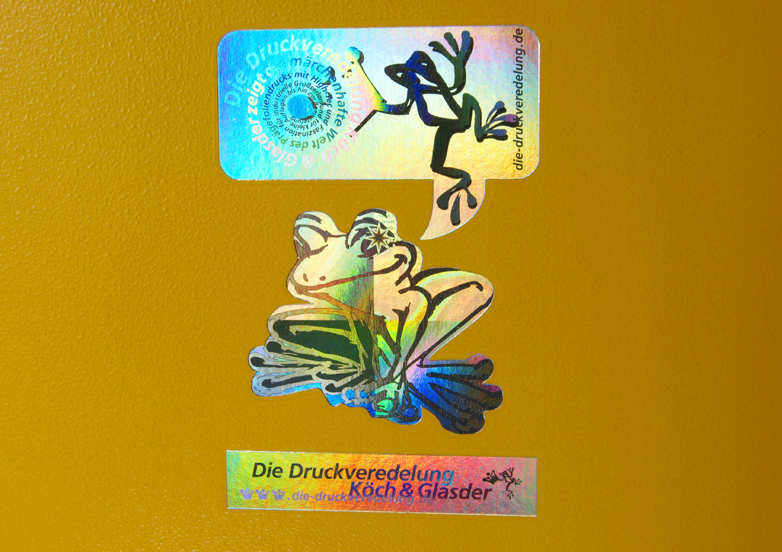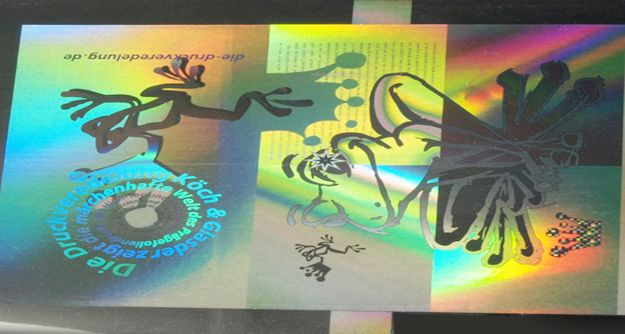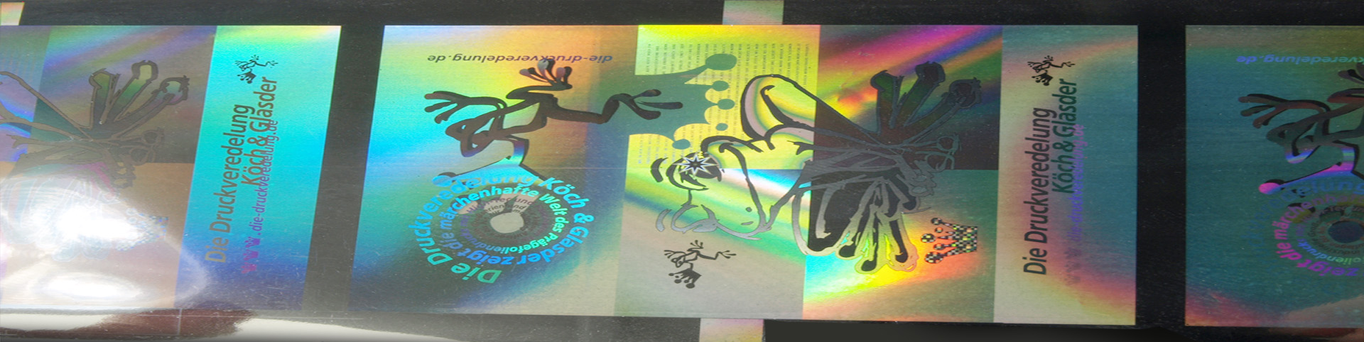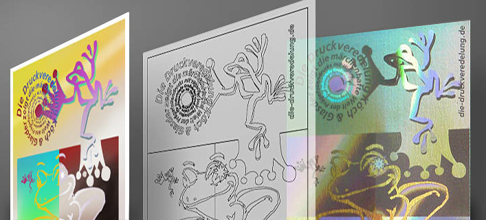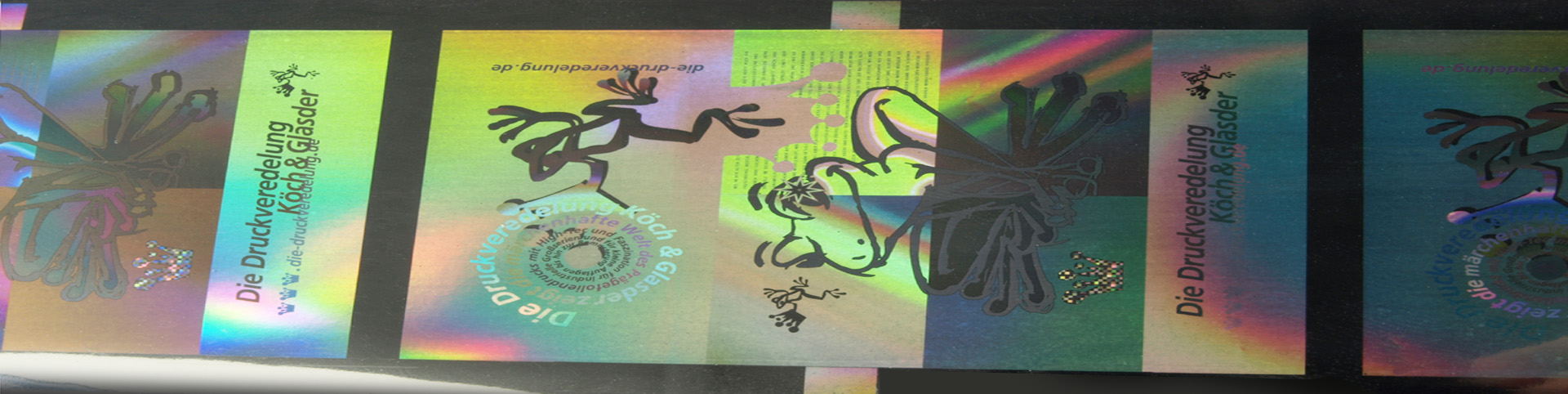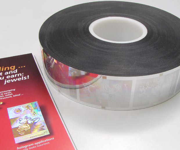 ... vom Entwurf über die Orgination (Master) zu den auflagenstarken Einzelhologrammen auf der Rolle ... und von dort passgenau appliziert auf alle gewünschten Drucksachen.